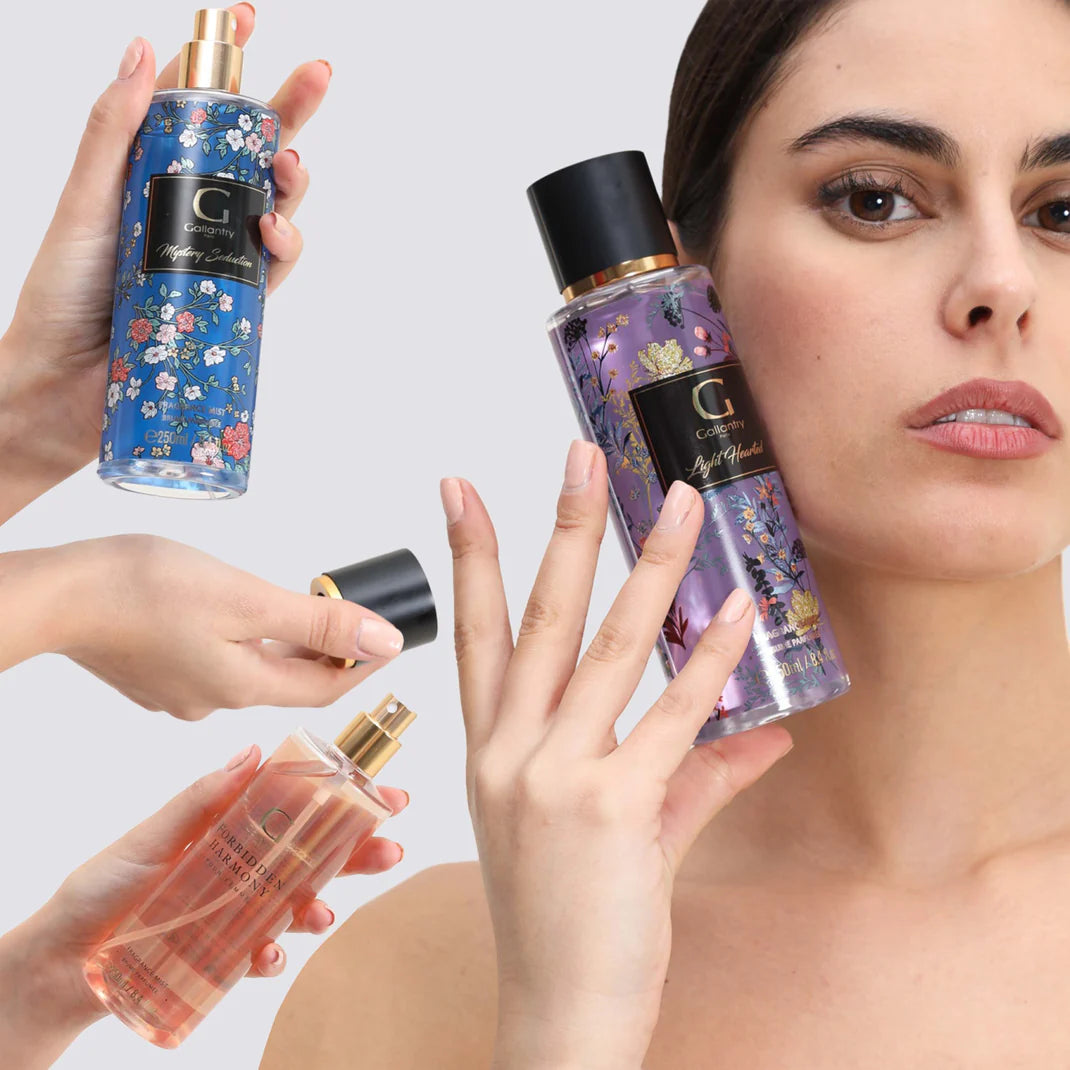 Delicate Oasis , a world of freshness 🌴, awaits you with Gallantry Fragrance Mist . This mist transports you to an oasis of softness and freshness, where the richness of exotic scents blends with vibrant notes.