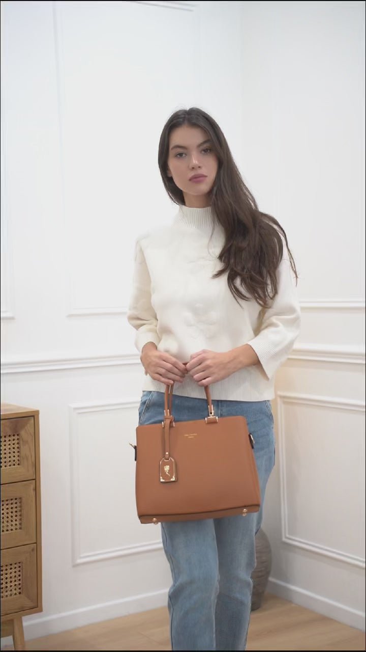 The Sophia bag is designed to be spacious and well-organized, ideal for carrying all your essentials in style. Its dimensions are 29 x 12 x 23.5 x 15 cm and it weighs 800 g . It can be carried by hand thanks to its two top handles, or across the body thanks to a removable shoulder strap, thus offering optimal comfort.