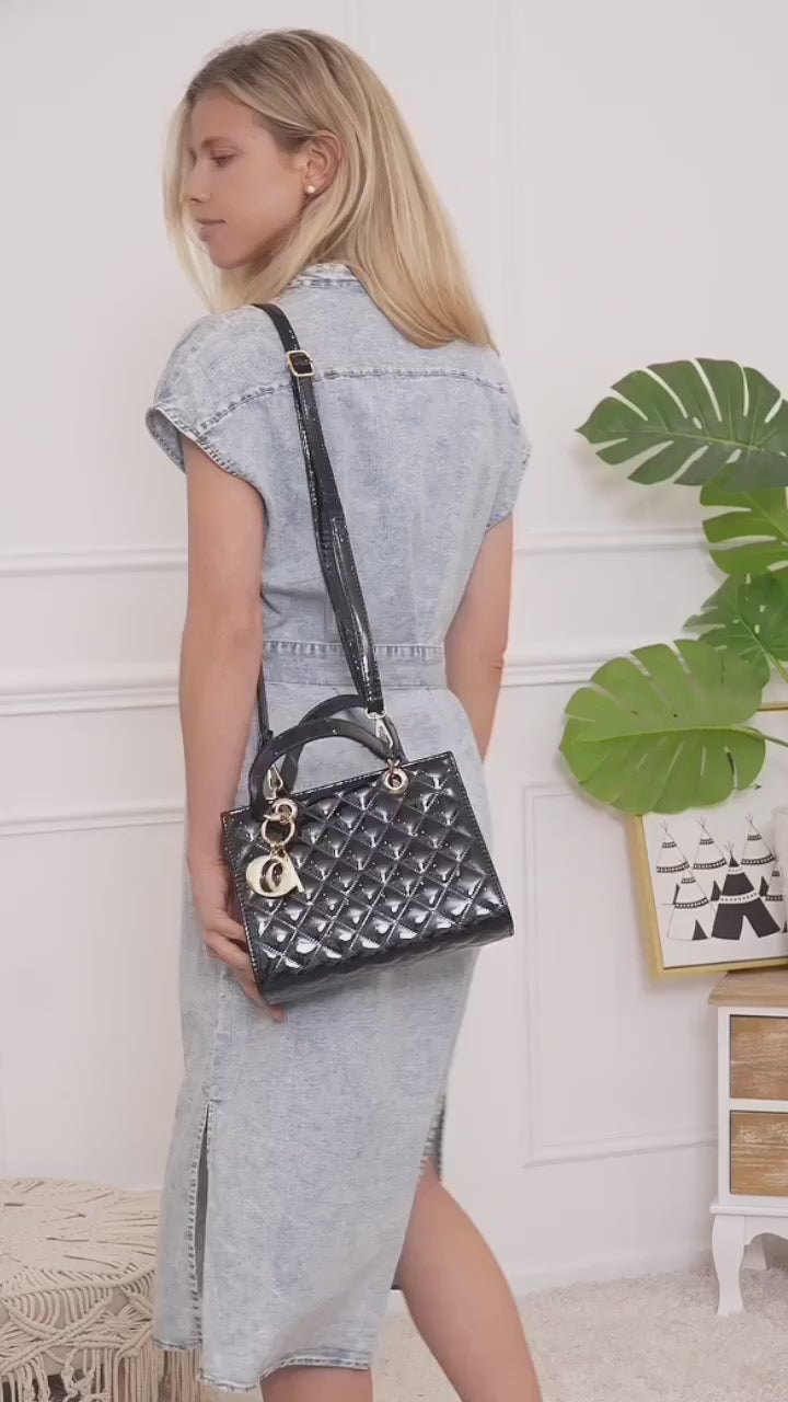 Forme et Design : Ce sac présente une silhouette structurée avec des coutures en losange qui ajoutent une note de luxe. Fabriqué en simili cuir brillant, il offre un aspect lisse et brillant, tout en étant facile à entretenir.